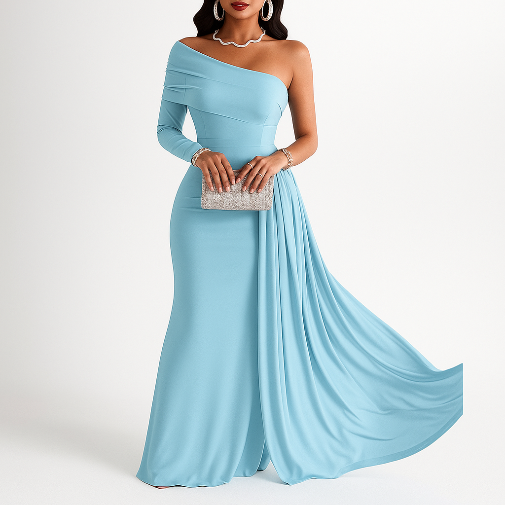 - **Detalhes Sofisticados:** A manga comprida e a bainha estilo sereia conferem um toque refinado, enquanto o zíper traseiro oferece praticidade no uso.